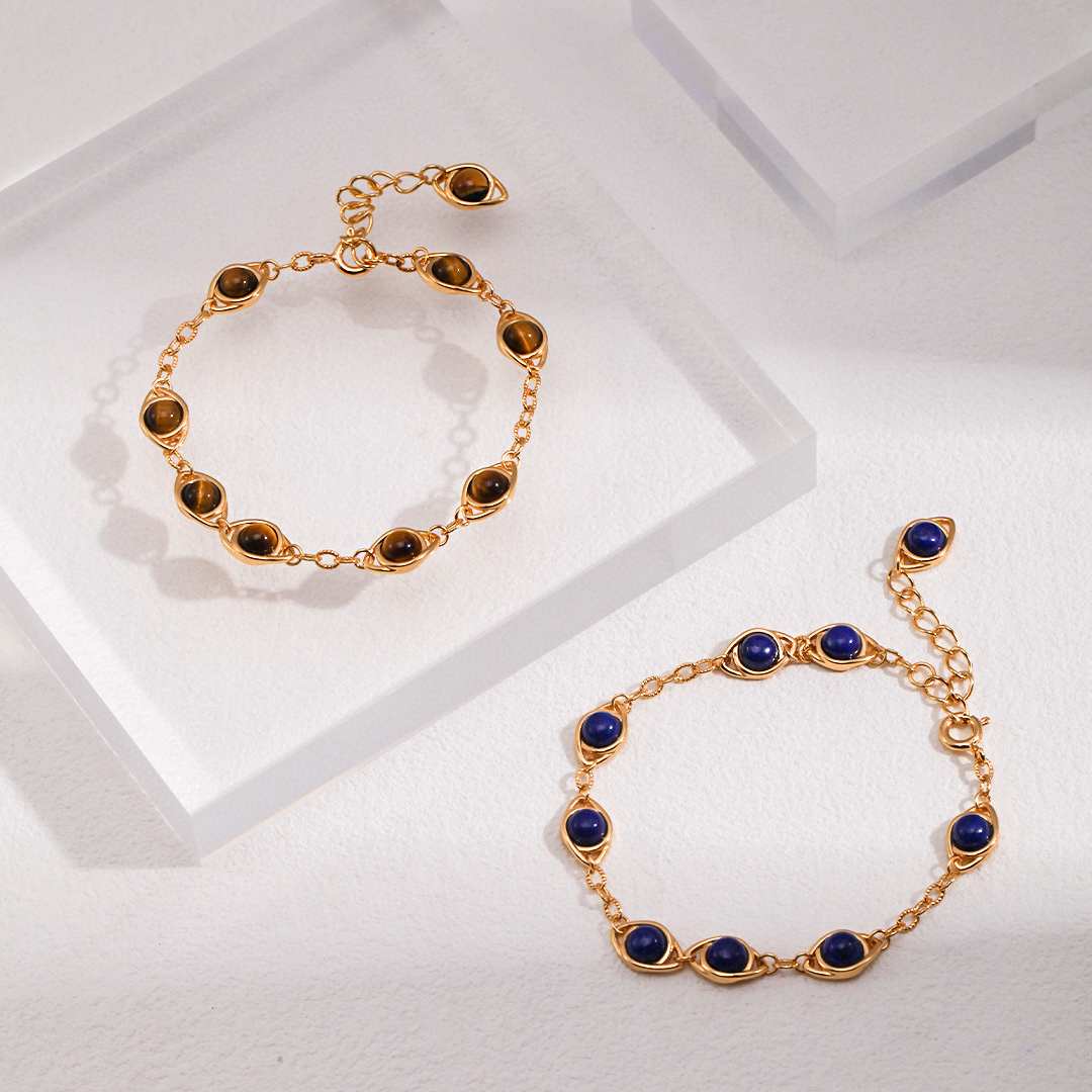 Sterling silver 18ct gold plated/ Tiger-eye Stone/ Lapis Lazuli Stone